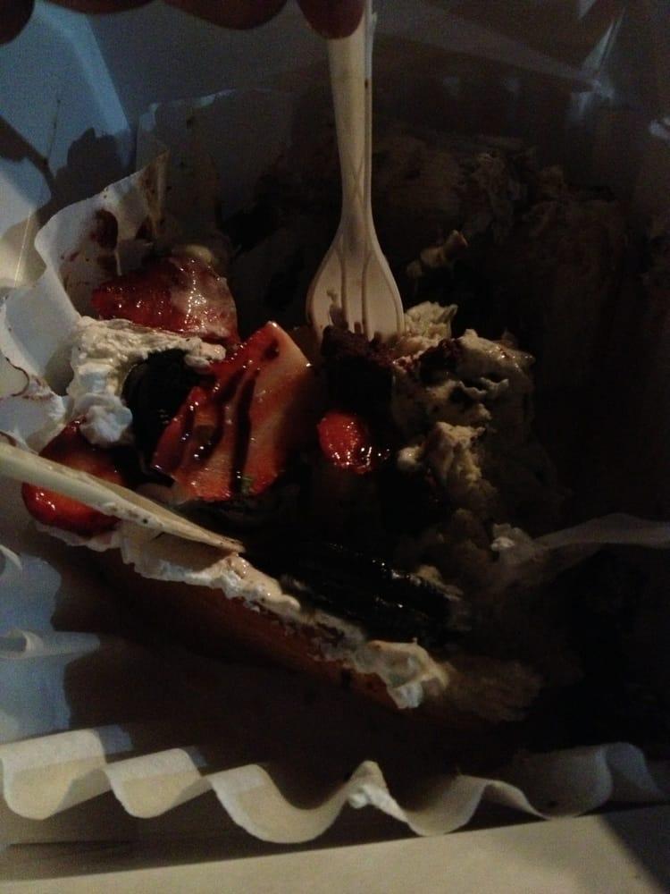 21 October 2025I was excited for this grand dessert, but unfortunately it was just okay. We got the matcha temptation toast box and though it looked really cool, it just tasted alright. I thought it was going to be toast soaked in honey (as I have had at other places), but it was literally a toasted loaf of bread carved out in the middle with toasted little pieces of bread inside of it. They had honey on the side that you can drizzle on top. The matcha ice cream was really good though and the fruit was decent. I didn’t care for the red bean much. The toast was actually pretty bland and had to be accompanied by the ice cream, honey or fruit for it to be sweet.